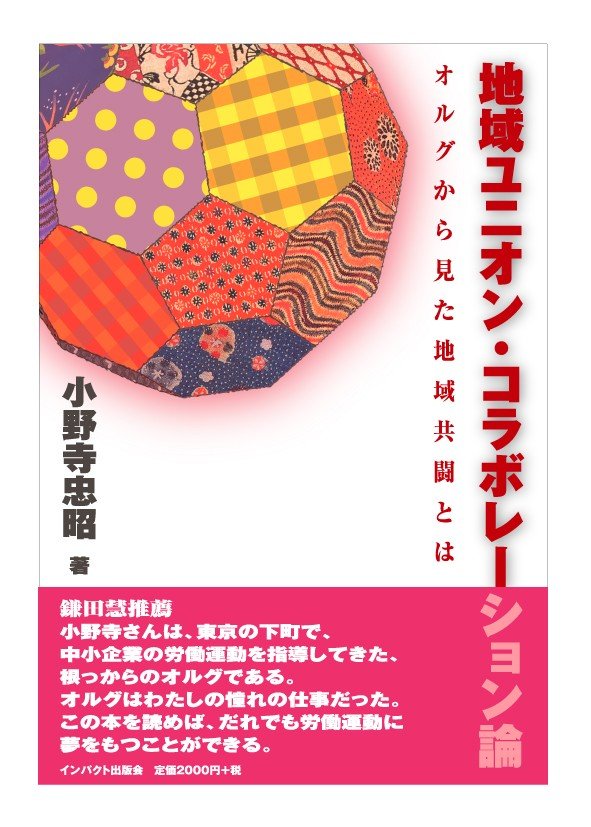 この度、『地域ユニオン・コラボレーション論 オルグから見た地域共闘とは』を発 売いたしました。ご一読下さい。(転送大歓迎) 小野寺忠昭・著/協同センター・労働情報・編/?インパクト出版会・発行/四六版 ・279頁/2000円+税(送料実費) ●推薦 鎌田慧(ルポライター) ●東條由紀彦(明治大学教授) 「小野寺さんは、東京の下町で、中小企業の労働運動を指導してきた、根っからの