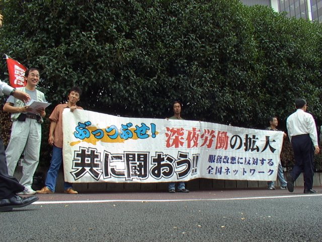 9月13日、連続深夜勤務に反対し裁判を起こしている郵政労働者たち約20名による東京・霞が関の郵政公社前での抗議行動 | ||||||