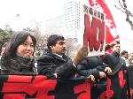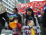 6月5日とにかく国会へ行こう World Peace Nowの流れをくむ<NOユージVIVA友情>キャンペーンは、有事法制に反対するために「6/5とにかく国会へ行こう」と呼びかけている。ユージスポット見学ツアー、国会前路上行動など多彩な取り組みを計画している。詳細 5月15日、衆院本会議で有事関連3法案が与党3党と民主党、自由党の賛成により可決された。全国から怒りの声を国会に集中しよう!次は6月10日(火)日比谷野音に集まろう!6月3日(火)には全労連などの主催で「STOP有事法制6・3緊急大集会」(午後6時30分・日比谷野音)が開かれる。6月10日(火)には陸海空20労組団体のよびかけで「STOP有事法制6・10集会」(午後6時30分・日比谷野外音楽堂)が開かれる。6月12日(木)には平和フォーラム などの主催する「もう戦争はいらない!有事法制にNO〜大集会・パレード」(午後6時30分・日比谷野音)が予定されている。国会前座り込み行動や国会議員への要請行動が連日おこなわれている。怒りの声を国会に集中しよう!国会に行けない人は法案に賛成した政党・議員へ抗議の電話・メールを!詳細はイベントカレンダーを参照。・5/14怒りのデモ 派遣法改悪法案が5月21日に衆院厚生労働委員会で与党3党の賛成により可決された。労基法改悪・派遣法改悪に反対の声を! 東京での大規模な集会としては、5月28日(水)に労基法大改悪NO!共同行動の「労基法大改悪NO!労働者の声を国会へ5.28中央行動・集会(仮称)」(午後6時30分〜・日比谷野外音楽堂)、5月29日(木)には連合主催の「労働基準・労働者派遣改悪反対決起集会」(午後6時30分・日比谷野外音楽堂)、6月6日(金)には全労連主催の「STOP!首切り自由化・使い捨て 労基法・派遣法改悪阻止6・6中央集会」(午前11時30分・日比谷野外音楽堂) が予定されている。国会前座り込み行動や国会傍聴行動、国会議員への要請行動が連日おこなわれている。詳細はイベントカレンダーと「労基法大改悪NO!共同行動」のウェブページを参照。労基法改悪・派遣法改悪の問題点については日本労働弁護団のウェブページなどを参照。 米英によるイラク侵略による死傷者は膨れ上がっている。激しい風雨の中、4/5(土)に東京・渋谷でWORLD PEACE NOWが主催する反戦集会/パレードに2万人近い人々があつまり、戦争反対を叫んだ。ある参加者は「雨なら傘で避けられる。イラクに降り注ぐミサイルは、避けられないんだ」と、市民の頭上に爆弾を落とす非人道的な戦争に怒りを表していた。 パレードの写真・参加した医療事務労働者の感想・写真レポート・動画VIDEO ACT!・追加写真 カサをさして15000人! 4月2日(水)午後6時30分から著名人の呼びかけによる「平和を願う日本の良心を いま世界に イラク攻撃即時中止を求める4・2大行動 NO WAR ON IRAQ! STOP 有事法制」(東京・明治公園)が開かれた。雨の降る中での集会だったが、傘をさしながら15000人の参加で成功した。「今、私たちの頭上には雨が降っているけれども、イラクの人たちの頭上には砲弾がふっている」という壇上のあいさつが胸を打った。参加した出版労働者の感想 東洋印刷争議が勝利和解 3月28日、東京高裁の場で東洋印刷争議の和解が成立した。4年前に会社は組合つぶしを狙って4名の組合員を整理解雇したが、全国一般東洋印刷分会の粘り強いたたかいで昨年地裁で勝利判決を得ていた。和解内容は、1名の職場復帰・3名の円満退職・解決金3670万円というもので「組合員一同、満足感一杯」とのこと。分会長の辻俊介さんは「首切り自由」は許さない!実行委員会の事務局としても活躍していた。 アメリカ大使館へ行く方へ アメリカ大使館前では抗議行動が連日おこなわれています。アメリカ大使館周辺の地図。 注意:なお、大使館に近付くためには以下のことに注意してください。集団にならずに一人で歩いていくこと。プラカードなどは見えないようにすること。通りすがりの人を装うこと。少しでも抗議に来た人だと分かると、警察官が不当にも止めようとするので注意してください。タクシーやバイクで乗り付けるのも効果的です。不当な妨害をされた場合に備えて証拠として記録するためのカメラ・テープレコーダーなども役に立ちます。警察による不当な規制には毅然とした態度で抗議していきましょう。在日アメリカ大使館・総領事館リスト 3・18全労連などの緊急反戦集会に2500人 3月18日(火)午後6時30分から全労連などの呼びかけで「アメリカはイラク攻撃するな 政府は戦争を支持するな 有事法制反対 3・18緊急中央集会」(東京・日比谷野外音楽堂)が開かれた。開催の3日前に呼びかけられるという緊急集会だったが、緊迫した情勢の下、2500人が集まりアメリカのイラク攻撃計画に抗議の声を上げた。集会終了後、国会までのデモ行進がおこなわれた。 3・18 連合の反戦集会 18日午後6時から連合などの主催の「平和のための3・18緊急集会」(東京・明治公園)が開かれた。6000人が参加しデモもおこなった。「国連決議なき攻撃開始に反対」との声を上げた。 3・15日比谷野音の集会&パレ