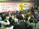 4月12日午後6時3分、衆院憲法特別委員会で与党は「国民投票法案」を強行採決した。不公正・非民主的な仕組みを残したままの強行突破だった。6時半からは日比谷野音で「STOP!改憲手続き法」の大集会が開催され、約5000人(主催者発表)が集まった。共産党志位委員長、社民党福島党首が国会報告、福島党首は「この法律は改憲暴走の扉を開くもの。何としても参院で止めよう」と訴えた。集会後、国会デモが行われた。傍聴者の声(動画by湯本)・写真レポート・オーマイニュース(動画)・13日衆院採決〜抗議声明・猿田速報(4/13)・全労協決議