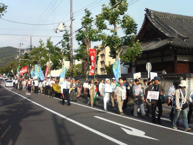 5月27日、「改悪教育基本法の具体化を許さない全国集会」が京都で開催された。主催者の予想を大きくこえる750人が全国から集まった。教基法が改悪され戦争する時代に突き進む中で、どんな運動をしたらいいのか。三宅晶子・大内裕和・小森陽一の各氏の問題提起、現場からの発言が続いた。また、根津公子さん・河原井純子さんの「君が代解雇」を止めるための取り組みなどが確認された。集会後、参会者は伊吹文科大臣事務所へ怒りのデモを行った。報告・写真1・写真2・写真3・大内裕和「格差社会と戦争国家化」(動画)