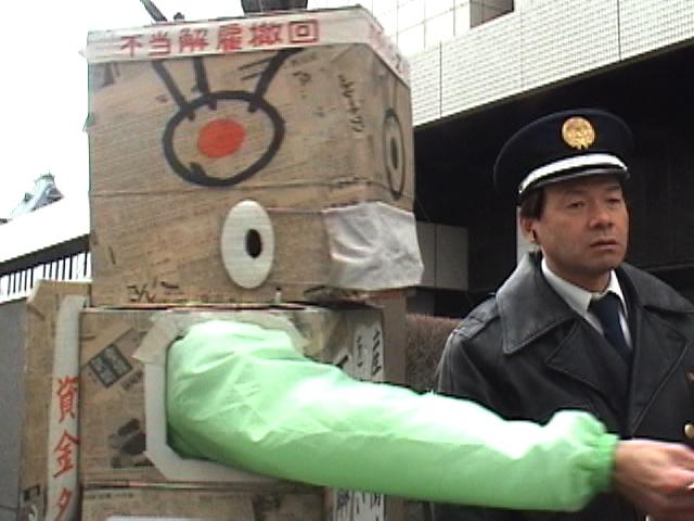 汚名を晴らしたい!〜反リストラ産経労事件、控訴審はじまる 「記事のねつ造があっても、全く不問に付して何の処分もしない会社が、組合をつくったということだけで“懲戒解雇”。こんなバカなことは絶対に認められない」。反リストラ産経労の松沢弘委員長は、2月8日午後、東京高裁前でマイクを握り声を張り上げた(写真)。松沢さんは、1994年1月にフジサンケイグループの日本工業新聞社で労使癒着の産経労組に異を唱え、新組合(反リストラ産経労)を立ち上げたが“懲戒解雇”された。その撤回を求めて17年間の争議。しかし労働委員会・地裁では敗訴し、この日は「起死回生」を賭けた控訴審初日だった。支援のロボット人形も登場して注目を集めるなか、法廷で松沢さんは「幼い子供のためにも汚名を晴らしたい」と涙の冒頭陳述を行った。(M) 動画(UnionTube)・写真(ロボットがビラまき)・反リストラ産経労HP