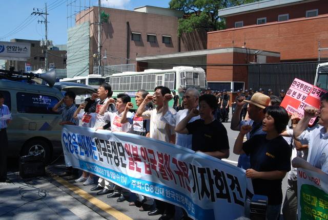日本大使館前で抗議する民主労総