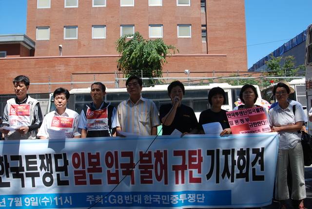 日本大使館前で抗議する民主労総