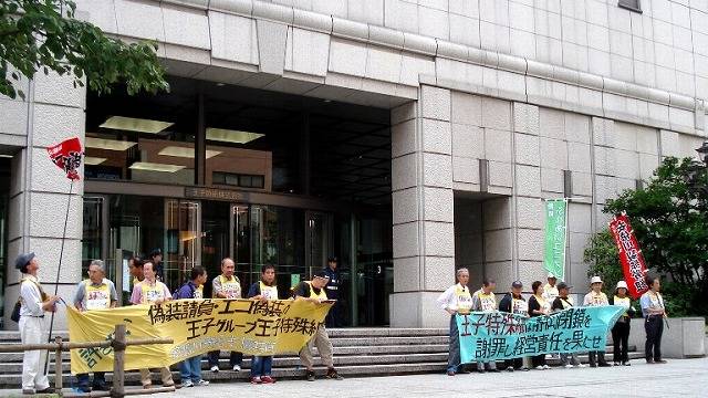 下請け労働者と共に静岡工場の閉鎖に反対し王子製紙に抗議