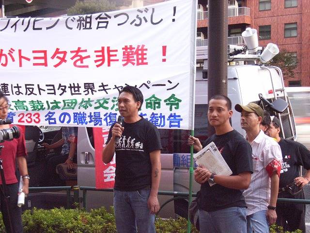 エド委員長(フィリピントヨタ労組)らとともに200名がトヨタ東京本社に抗議、夜「東京集会」開く