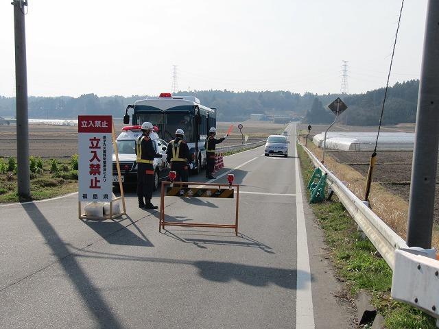20キロ圏内に入る手前の交差点で検問所があり、装甲車が止まり、数人警官が立っていた。