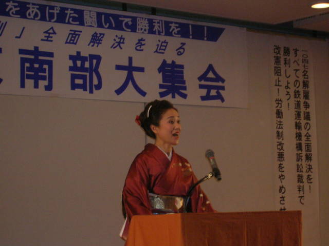 以下、10・25「JR採用差別」全面解決を迫る東京南部大集会の写真です。神田香織さん(2枚目)の新作講談「ぽっぽや義士伝」がありました。参加者は350人。(大地実)