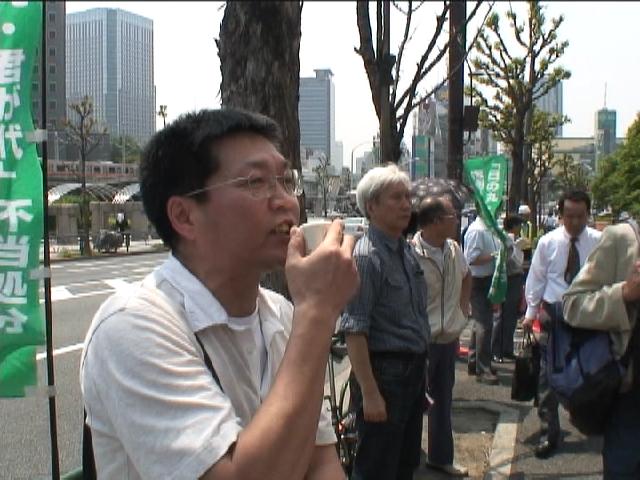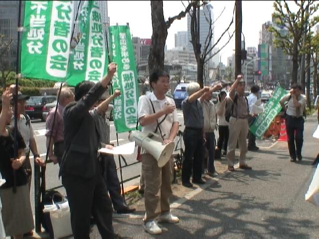 5月23日、東京都教委は4月入学式で「君が代」斉唱時の不起立を理由に、2名の教員の処分を強行した。内1名は初の処分である。この暴挙に対し、処分発令場所の都教職員研修センター前には、50名が抗議にかけつけた。この処分で、2003年の10・23通達に基づく懲戒処分は、のべ410名にのぼる。 今回処分を受けた都立高校教員は、「2名という数は問題ではない。これだけ多くの人たちに支えられていることが嬉しい」と語った。また初処分を受けた特別支援学校の教員は、「処分発令者は、自分の名前すら言わなかった」と怒りを露にしていた。 根津さんの解雇阻止、そして東京都教育委員会が都立学校の職員会議で挙手や採決を禁じた通知に、都立三鷹高校の土肥信雄校長が「現場の言論の自由が失われている」と撤回を求めていることなど、都教委の思惑が徐々に適わなくなってきている状況がある。被処分者2名の勇気ある決断を支援し、裁判闘争を支える職場・地域からの闘いを広げていかなければならない。(湯本雅典) ↓今回処分をうけた教員 Created by staff01. Last modified on 2008-05-24 10:06:39 Copyright: Default | ||||||