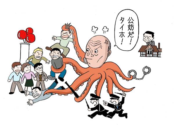 風刺漫画(壱花花)〜 麻生宅見学ツアー不当逮捕 | ||||||