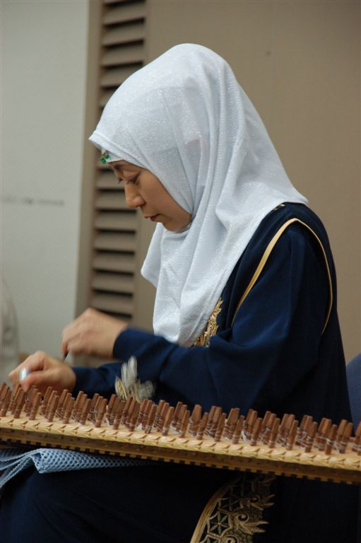 ヤスミン植月千春さん(写真上)が、カーヌーンを演奏した。美しい調べのあとに、「イラク攻撃の時にも演奏した。本当は、平和のなかでアラブの音楽を奏でたい」と涙で言葉を詰まらせた。