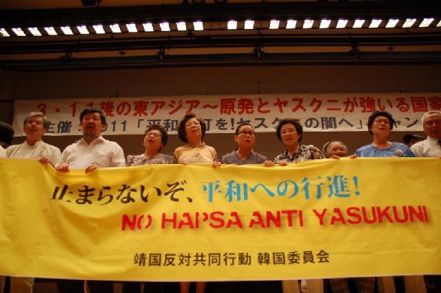 夜の神田の街に、「ヤスクニ ノー」「原発 ノー」のシュプレヒコールが響きわたった。8月13日、東京都千代田区の全電通会館ホールで行なわれた「平和の灯を! ヤスクニの闇へ キャンドル行動」。450人(主催者発表)の参加者は、最後まで集中力を持続しながら、歴史の闇に光を当てようとした。 アジアからのゲストを招いて毎年開かれるこの行動。例年と大きく違う点は、言うまでもなく3月11日に東日本一帯を襲った大震災の発生と、それによる史上最悪の原発事故だ。 メインテーマを「3・11後の東アジア−−原発とヤスクニが強いる国家と犠牲」と掲げ、屋内集会とデモ行進が、厳しい残暑のなかで取り組まれた。 ■「犠牲のシステム」 パネリストの高橋哲哉さんは、「犠牲のシステム」をキーワードに、「8・15ヤスクニ」と「3・11フクシマ」を対置。 「犠牲のシステム」とは、「ある者たちの利益が、他の者たちの生活を犠牲にして産み出され、維持されること」と定式化。この犠牲は通常隠されているか、共同体にとっての「尊い犠牲」としてとして美化され、正当化されている、と高橋さんは指摘する。 「ヤスクニ」というシステムは、植民地帝国としての日本国家を建設、拡張していくために敵対する人々を殺りくし、その過程で戦死した自国の兵士の死を「尊い犠牲」として正当化するシステムだった。 原発も同じである。ひとたび事故が起きれば、周辺に甚大な放射能被害をもたらすこと。運転に際し、被曝労働を前提とすること。原料となるウランの採掘現場でも労働者の被曝、環境汚染が強制されること。そして行き場のない「核のゴミ」の処分についても、立地地域周辺に押し付けられようとしていること。 高橋さんはこの4点を挙げ、ヤスクニと原発に共通する「犠牲のシステム」を解き明かした。 ■核と差別 沖縄国際大学名誉教授の石原昌家さんは、「フクシマを見る沖縄の眼差し」と題して発言。 沖縄の米軍基地には核爆弾が貯蔵され、その投下訓練が行なわれてきた。 通常爆弾を搭載した爆撃機が、核貯蔵庫のわずか手前に墜落し、大爆発した。米軍のヘリや民間機が原発に墜落する危険性や、原潜が沖縄に寄港するなど、沖縄に原発そのものはなくても、日常的に核の脅威にさらされていることなどを報告。 にもかかわらず沖縄電力は、小型原発の沖縄設置に向け動きだしている。「基地の押しつけ」と「原発の押しつけ」の構造は、「カネによる住民からめ取りの構造とセットだ」と言及した。 潘朝成さん(台湾慈済大学メディア学部講師)は、先住民族、少数民族が侵略と略奪の対象となり、社会の最下層での労働を強制され、さらにその居住地が核実験場になったり、有毒物質の処理場として選ばれてきた差別の歴史を告発。 台湾に原発がなくても電力は十分に足りており、米台の政治的な利害関係が作用していると指摘し、原発建設反対運動に立ちあがる先住民の闘いを紹介した。 韓洪九さん(聖公会大学教授)は、「朝鮮半島の危機と平和秩序の構築」というテーマで、韓国の原発政策について語り、現代建設社長時代から強烈な原発推進論者である李明博大統領を厳しく批判した。 ■兄の消息を探し続けて 「遺族証言」では、二人の女性が登壇。裕福かつ厳しい家庭に育った南大鉉さんは、家を継ぐはずの長兄を徴兵された。 だが、その後の兄の消息がまったくわからず、両親と姉ら家族総出で懸命に行方を探す。その心労がたたり、無念のうちに祖母や両親が他界。 姉とともに家族の恨みを晴らすべく被害者団体と出会うのだが、やがて、あれほど探していた兄が、実は靖国に合祀されていたという衝撃の事実を知る。あろうことか日本政府は、召集日や所属部隊そして戦死日を記録しておきながら、遺族にはいっさい知らせていなかったのだ。 古川佳子さんも、二人の兄を天皇の軍隊に取られた。それぞれビルマ、台湾沖で戦死している。二人とも、愛する家族を無断で侵略戦争の「英霊」に仕立てあげられることを拒否し、合祀取消しを求め裁判で争っている。 コンサートは昨年と同様に盛り上がりを見せ、6時間にも及ぶ長丁場の屋内集会は、興奮のうちに幕を閉じた。 ■核を愛する権力者たち 「権力者たちは核を愛している。そんなに好きならば、抱いて眠ればいいじゃないか」――高橋さんは集会の最後に痛烈に皮肉った。「隠す、ウソをつく、過小に見せる」。レベル7のフクシマに対する政府の対応は、彼らの変わらぬ体質をあぶり出した。第二次大戦下の大本営とまったく同じやりかたなのだ。 会場の外では、在特会をはじめとする右翼諸団体が、参加者への敵意をむき出しにして、罵詈雑言の類を叫んでいる。靖国通りの随所で、無謀な突入が図られている。歩道は腕章をつけた私服警官があふれている。 だが、キャンドルを手にしたデモ隊は、その数と気迫、そして時空を超えて同じ過ちを繰り返す、この国の闇への怒りそのもので、妨害勢力を圧倒するデモを貫