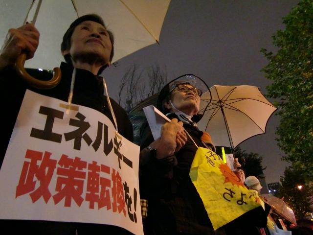 11月11日「たそがれの経産省キャンドル包囲・人間の鎖アクション」に参加した。 反原発・脱原発運動の盛りあがりに比例して、不当な妨害や弾圧も激しさを増している。福島の女性たちが、全国の女性たちが座り込んだ場所に右翼が押しかけ、一体となった警察の介入がエスカレートしている。 私はその情報に矢も楯もたまらなくなり、ようやく現地に駆けつけることができた。初日の座り込み以来2度目。仕事を理由にさぼりすぎた反省も込めて。 駅の階段を駆け上がると、集まった人々は宣伝カーからの発言に耳を傾けていた。色とりどりの傘の隙間から、ようやく車体上部が見えた。マイクを握っているのは俳優の山本太郎さんのようだ。続いておなじみ制服向上委員会の歌が始まった。 東京メトロ・霞が関駅の出入り口付近では、特に警官による規制が目立つ。退庁の通勤者を通させることを口実にして、やかましい警告を繰り返している。「立ち止まらず歩いてください」。ヒステリックな指示は、行動参加者と非参加者を分断する常とう手段である。正当な表現活動を迷惑だと思わせ、敵意を煽っているのだ。 そんな警備陣の努力も空しく、参加者は増え続けた。やがて圧倒的な包囲の輪が形成された。傘を差し、カッパを着て、ゼッケンを首から垂らし、横断幕を広げ、キャンドルを持ち、楽器を打ち鳴らした。 寒さのなかで立ち続ける人々の表情は明るく、あちこちで連帯の会話が交わされていた。つないだ手はしっかりと握られ、かけ声とともに高々と掲げられた。 「原発はいらない」−−1300人の叫びが、冷たい雨をはね返した。省内から漏れる光が、参加者の固い決意を照らしていた。(報道部・Y) Created by staff01. Last modified on 2011-11-11 23:10:22 Copyright: Default | ||||||