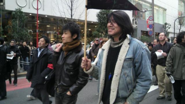 企画・リアリティツアービューロ 警察官で壁が出来て通路を通れない。そんな事が現代日本で起きている。信じられますか?警察官も被曝する。被曝最前線に装備もなく追いやられる事になるかもしれないのに、この原発事故に何の疑問も持たないの? むしろ勇気ある、未来の日本を真剣に考えてるのはこのツアーの参加者じゃないの?なのに取り締まり、写真や動画を撮りまくるこの国はもう何もかもあべこべだ! 2011年12月25日、新宿アルタ前公園に1時集合、1時半出発。 1時過ぎにアルタ前公園に着くとものすごいお巡りさんの数。 もう30人程が勝俣会長へお手紙を届ける為に待っている。私も手紙を書きました。 「勝俣会長へ 東電は日本の貧乏神になりました。その貧乏神の親分になった気分はどうですか?はんせいしてますか?」と書きました。手紙をスタッフの人に託しました。弁護士の萩尾健太さんはこの後、勝俣邸に行く為の路地に並んだ警察官の<壁>の前に立ち、 警察官側に不法行為がないように、とても静かに威嚇していました。 公園前で熱いシュプレヒコールをしているとどんどん集まる警察官。ざっと見て200人はいたでしょうか。機動隊車両2台。勝俣会長邸に遠足に行こう、という取り敢えずの平和的な目的で集まったものであり、当たり前だけど、誰も武器を持っていないし、人を傷つけようとしていな い。放射能をまき散らし、ウソばかり発表する東電の方がよっぽど<危険分子>なのに。 新宿から四谷三丁目まであっという間。コンビニの角を曲がると勝俣会長邸、ところが警察官の壁が出来ている。一列に並んで道路を塞いでいる。これは警察による公道の不法占拠では? なんでお巡りさんが道を塞いでるの? 誰の為の何の為の公僕なの? コンビニ横の通路にはツアー参加者で溢れました。 通せ!通さない!の押し問答の末、何故か「三人づつなら勝俣邸への道を通す」となりました。前代未聞。公道を国民が自由に通行出来ないのです。<関所>が勝俣邸前の歩道に出来ました。三人と言う事で私とひまわりさん園良太さんで<通行>しました。 園さんは白い棺桶のような勝俣邸に向かって「何故ここは守られてるんだ!これが他の国であれば焼き払われて終わりだ!」と叫んでいた。園さん「麻生邸リアリティツアーの時は麻生邸までたどり着けなかった、今回は行けた。人数も今回は多い、だからあっち(警察側)も無理は出来なかった。警察はこちらに非がないのにこれだけの数が出るんです。言われた通りに動くロボットです」と今回のツアーの感想を述べた。 ひまわりさんは「逮捕者が出なくて良かった」と安堵した様子。参加者にはフランス、カナダの人達、そして中学生も居た。形にとらわれない反原発の抗議行動が、これからもどんどん起きて欲しい。参加者はツアー企画者によると最終的には150人くらい。まだまだ少ない。千人、二千人でも少ない。 もっともっと参加して欲しい。そして公害を垂れ流す民間企業の会長を守る警察の姿をしっかり確認して、この 国の何重にも重ねられた原発利権の特権が支配し、君臨している事実に気がついて欲しい。東電に公共料金という形の税金を奉納し、公務員である警察官にツアーを監視さ れ民間人である勝俣邸の警備に警察官が使われ、手紙を渡すという平和な遠足な のに道を封鎖される事実をその事実を確認して欲しいでのです。 報告=上田眞実 2011 12 25 *写真上はツアー出発前にシュプレヒコールを上げる園良太(30)さん) ↓勝俣邸に向かう ↓公道をふさぐ警察官 Created by staff01. Last modified on 2011-12-26 11:43:15 Copyright: Default | |