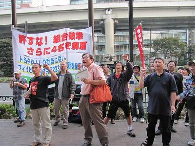 私たちフィリピントヨタ労組を支援する会は10月9日から12日に掛けて、11年にも及ぶフィリピントヨタ労組(TMPCWA)の解雇闘争の解決を求めて、フィリピンと日本での同時共同行動に取り組んだ。 小嶋武志(フィリピントヨタ労組を支援する会) Created by takaheims. Last modified on 2011-10-13 16:22:03 Copyright: Default | ||||||||||||||