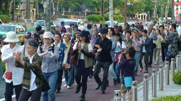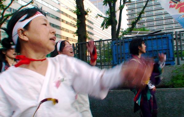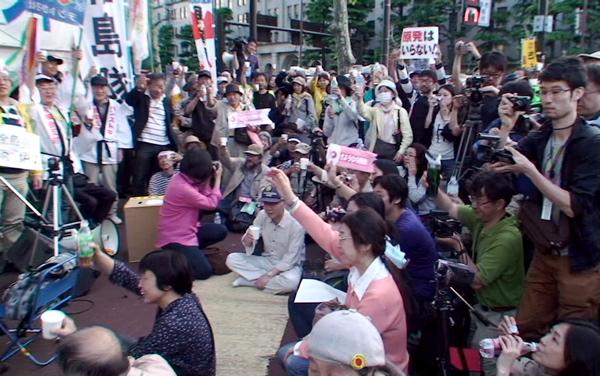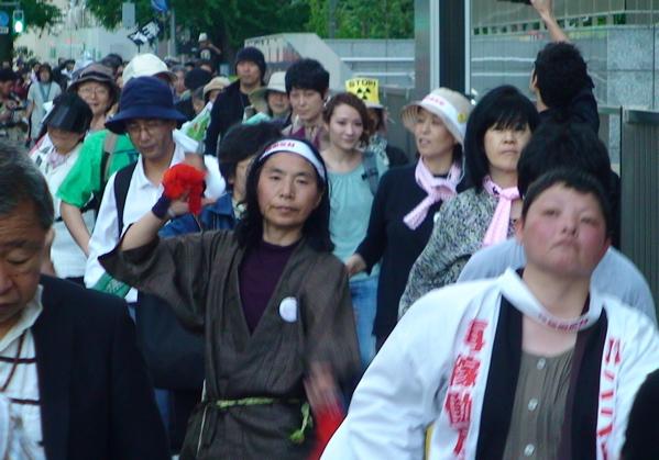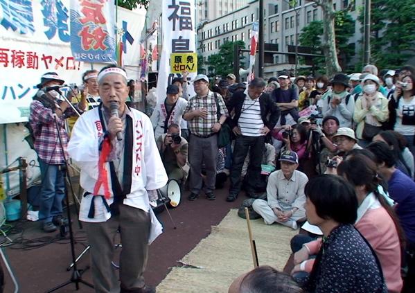原発ゼロによいしょ!〜「カンショ踊り」で経産省を包囲する「よいしょ、よいしょ、よいしょ」。威勢のいい福島の女たちのかけ声と足音が、夕刻の経産省ビルを包んだ。この「カンショ踊り」は会津地方の盆踊りで、年貢の苛酷な取り立てに対する民衆の怒りが込められている。数百人規模で練り歩く「カンショ踊り」は壮観。5月5日原発ゼロの日にふさわしい喜びと怒りの行進となった。その後、テント前では記念イベントが開催された。80歳のハンスト決行者・佐久間忠夫さんが音頭をとり水で乾杯した。テント代表の淵上太郎さんは「原発ゼロは確かにうれしい。しかしこれからが新しいスタートだ。再稼働を絶対に許さない決意で頑張ろう」と檄を飛ばした。現場からは、 OurPlanet-TV・岩上チャンネル・レイバーネットTVなどが生中継し、全国・全世界に広がるイベントとなった。(M) ↓「楽しかった」と語るひまわりさん ↓午後6時から始まった集会 ↓「原発ゼロ」を祝って水で乾杯 Created by staff01. Last modified on 2012-05-06 13:35:59 Copyright: Default | |