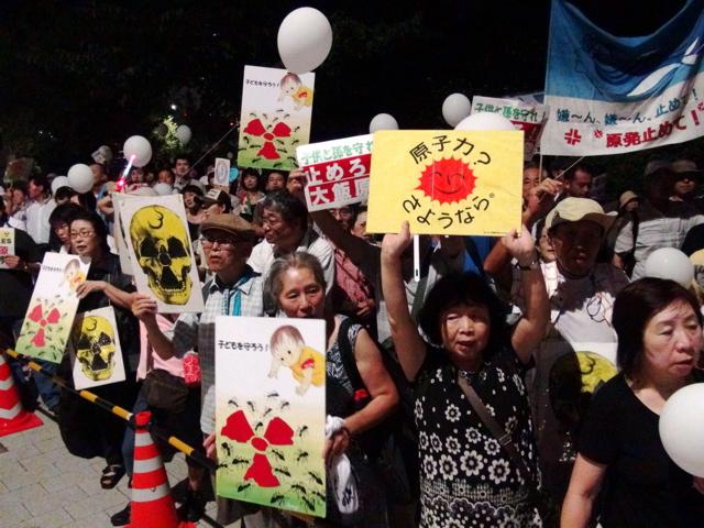 フリースピーチの輪ひろがる!〜官邸前・国会前「金曜デモ」お盆休みの終盤でとりわけ暑さが厳しかった8月17日(金)。この日も官邸前・国会前・経産省前・環境省前など霞ヶ関一帯で、多くの人たちが手製のプラカードを持参し「原発再稼動反対」「規制委員会人事案撤回」の声を上げた。いつもより人数は少なめだったが、参加者の怒りと真剣度はまったく変化なく、金曜デモが確実に定着したことを示していた。国会前では、戦争体験者・国会議員・教員・視覚障害者・在フランス日本人など20人近くが、フリースピーチのマイクを握った。「関電の電力不足は大嘘だった。許せない」「原発推進の元凶は財界」「もっとマスコミ批判を」「日本の原発を一手に管理しているイスラエル管理会社がおかしい」など各々が怒りをこめてアピールした。(М) Created by staff01. Last modified on 2012-08-18 13:23:46 Copyright: Default | ||||||