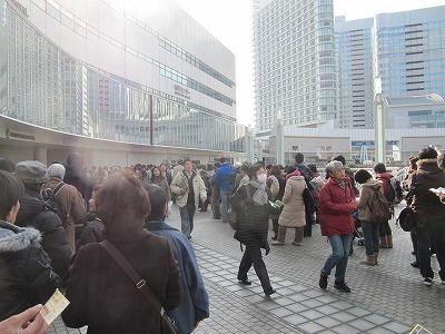 パシフィコ横浜の会場前で入場を待つ参加者の列