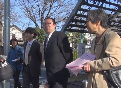 あたりまえのことをするだけ〜「君が代不起立」の田中聡史さん淡々と3月19日(火)、都立板橋特別支援学校の卒業式が行われた。この学校には、昨年の入学式で東京都の公立学校でただ一人「君が代」不起立をした田中聡史さん(44歳・写真)が勤務している。卒業式を前に出勤してきた田中さんは、「今回も不起立をするつもりだ。いつもの通りあたりまえのことをするだけ」と淡々と語った。何のための不起立かと問うと「尊厳、思想や良心のためというと大げさだが、自分らしく生きようと思えばそうせざるをえない」ときっぱり。 田中さんの不起立は今回で4回目。昨年は戒告処分を受けるとともに18回にわたる「再発防止研修」と称する思想転向の強要を受けている。都教委は、研修に屈しない田中さんを、それを理由に分限免職処分(公務員における解雇)にする可能性もある。 当日はそうした状況をふまえ、「学校と地域をむすぶ板橋の会」や「河原井さん根津さんらの『君が代』解雇をさせない会」など約15人が、門前で支援のチラシまきを行った。都教委は、通用門や正門に職員を10人近く配置して支援者を監視。副校長と主管の教員は「生徒にはチラシを渡さないでください」と、体を近づけてチラシまきを妨害した。(写真右=根津公子さん、その隣が副校長と主管の教員) 「受けとる受けとらないは子どもの自由。子どもに知る権利はないのか」と反論されると黙ったままだった。こんな副校長の威圧的な姿勢に、「教育の自由」が奪われてしまった今の学校の実態が透けて見えてくる。田中さんの「君が代」不起立は、こうした中だからこそ、よけいに輝きを放つ。(佐々木有美) Created by staff01. Last modified on 2013-03-26 12:05:10 Copyright: Default | ||||||