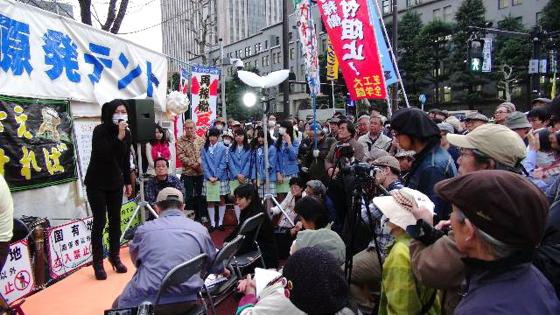「私はテントに救われた」〜双葉町から避難した亀屋幸子さんが訴え3月22日夕方、経産省前テントひろばは数百人の人々でごった返した。16時からの「あおぞら放送」そして17時からは、国のテント撤去を許さない抗議集会が開かれた。双葉町から避難した亀屋幸子さん(写真上)はこう語った。「原発事故で着の身着のまま東京・港区に逃げてきた。でも知っている人も話す人もいなかった。その時テントと巡り会い、立ち直ることができた。そこでいろいろ話をするなかで“自分もやらなくちゃ”と思うようになり、毎週金曜デモに来るようになった。いまテントの撤去が言われているが、国はその前にやることがあるはず。福島第一原発の撤去を先にして下さい。再稼働はやめて下さい。私たちの苦しみを二度と誰にも味あわせたくないのです。テントは私を救ってくれた。みなさん、一緒にテントを守りましょう」。必死の訴えに大きな拍手が起きた。(M) ↓16時からの「あおぞら放送」に出演した制服向上委員会の橋本美香さんと高橋プロデューサー ↓制服向上委員会の歌 ↓野外ギャラリーはいっぱい ↓17時からは「テント撤去抗議の大集会」が開かれた。黒田節子さんの訴え ↓反原連のミサオ・レッドウルフさんさん ↓中川五郎さんも歌った Created by staff01. Last modified on 2013-03-23 21:06:19 Copyright: Default | |