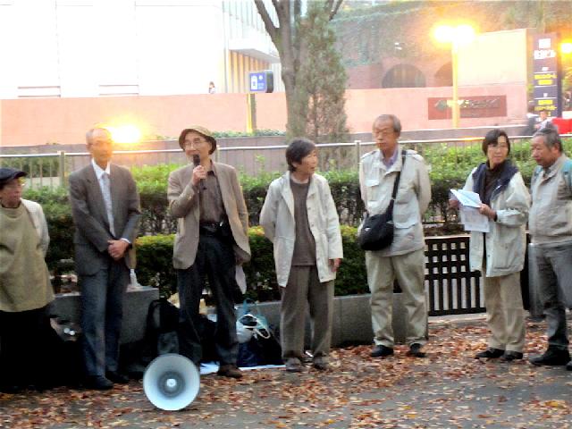 2003年秋、東京都で「日の丸」「君が代」の強制が始まってちょうど10年がたった。いま、東京の学校から自由が急速に失われている。こうした事態をふまえ11月7日、都教委包囲ネット・「君が代」解雇をさせない会・学校と地域を結ぶ板橋の会が、都教委に要請行動を行った(写真上)。三団体は、「君が代」処分を行わないこと、被処分者に再発防止研修を行わないこと、実教出版日本史教科書の排除をやめること、田無工業高校で行われた自衛隊での「防災訓練」を今後中止することなどを要請した。 要請後、都庁前で行われた集会では、田無工業高校の自衛隊訓練の実態が語られた。整列やロープの結び方など自衛隊員が受けるような訓練が行われたという。戦前の軍隊と学校との連携が、そのままタイムスリップしたような現実に、参加者の多くが深刻な危機感を口にした。 「戦争は教室から始まる」とかつて語ったのは、元軍国少女で戦後教員になった北村小夜さんだが、いま、戦場にこどもたちを駆り立てた戦前が舞いもどりつつある。この日は「アルジャジーラTV」の取材があり、根津公子さんがインタビューに応じた(写真)。「君が代」強制問題が日本のメディアに載ることがなくなったが、外国メディアは日本の「右傾化」に関心が高いことが感じられた。(佐々木有美) Created by staff01. Last modified on 2013-11-08 14:45:26 Copyright: Default | |
