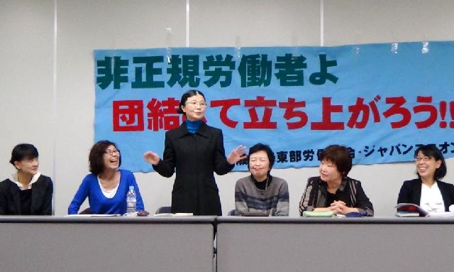 全国一般東京東部労組の須田です。以下、皆さんにもご支援いただいているメトロコマース支部の闘いについて行われた裁判と団体交渉の報告です。 東京メトロの地下鉄駅売店で働く非正規労働者の女性たちでつくる全国一般東京東部労組メトロコマース支部が、正社員との差別をなくすために賃金差額などの支払いを求めている裁判の第4回口頭弁論が10月23日午前11時30分から東京地裁705号法廷で開かれました。この日も同支部を支援する仲間が多く駆けつけ、傍聴席はあふれました。法廷では、組合側の弁護団がこれまでに会社側から開示された資料に基づき、非正規労働者(契約社員B)への差別の実態を次のように明らかにしました。 正社員は年功賃金(年齢給と職務給)だが、契約社員Bは時給1000円が基本。正社員には住宅手当、家族手当、資格手当・成果手当が出るが、契約社員Bにはなし。正社員の深夜労働手当は3割5分増しだが、契約社員Bは2割5分増し。正社員の早出残業手当は2時間までが2割7分増しで2時間以上は3割5分増しだが、契約社員Bはずっと2割5分増し。契約社員Bの年末年始手当は正社員より1日500円少ない。正社員の賞与は夏・冬で給料4カ月分+32万5000円が出るが、契約社員Bは1年間で24万円。退職金は正社員にしか支給されない。正社員は永年勤続や定年退職時に表彰状や賞金がもらえるが、契約社員Bにはなし。私傷病時の欠勤は正社員が6カ月間有給で休めるが、契約社員Bは無給。休職期間は正社員が2年6カ月で、契約社員Bは30日。正社員は有給の年忌休暇、出産休暇、生理休暇があるが、契約社員Bはいずれも無給……。 非正規労働者に対する数々の差別に法廷は怒りに包まれました。組合側の弁護団は次回の期日までに、同一労働であるにもかかわらず、このような不合理な格差を設けていることが労働契約法20条と公序良俗違反に該当することを主張する予定です。他方、会社側の弁護士は、裁判長から組合側が指摘する差別の実態を認めるのか認めないのか明らかにするよう求められました。また、会社側がいまだ隠ぺいしている契約社員Aの労働条件や登用のあり方なども開示するよう求められました。 裁判後、弁護士会館で行った報告集会では、5月1日のメーデーに提訴してから新たに同支部に加入した青木組合員が紹介されました。「以前から組合に加入したかった。頑張っていきます」とあいさつすると、参加者からは大きな拍手が巻き起こりました。また、11月22日に開催される「がんばれメトロレディー!非正規大集会」で披露する予定の「メトロ音頭」を同支部が歌いました(写真冒頭)。弁護団の青龍弁護士・滝沢弁護士・今野弁護士、同じ労働契約法20条裁判を闘っている郵政産業労働者ユニオンの須藤書記長、コミュニティ・ユニオン全国ネットワークの岡本事務局長、11・22大集会実行委員会としてビデオプレスの松原さんがそれぞれ発言しました。最後に同支部の後呂委員長による団結ガンバローで締めくくりました。 次回の裁判期日(第5回口頭弁論)は12月4日(木)午前11時30分から東京地裁705号法廷で行われます。裁判後には報告集会も予定しています。引き続き傍聴支援をよろしくお願いいたします。 この日は午後3時から東京・上野で同支部とメトロコマースとの第46回団体交渉もありました。 組合側は「なぜ同じ10年間仕事をしてきたのに契約社員Bにはねぎらいの言葉すらないのか。同じ人間なのにおかしいではないか」などと、裁判所で明らかにした非正規労働者への差別の実態をあらためて追及しました。しかし、会社側の担当者は「採用時や契約更新時に契約社員Bの方々には納得してもらって契約している」「長期雇用を前提としている正社員とは労働条件に差があっても問題はない」という差別を開き直る態度でした。同じ売店で同じ仕事を10年以上にわたって長期に継続している販売員を非正規労働者の契約を結んでいるという理由だけで大きな格差をつけていること自体に社会的批判を招いているという自覚がまったく見られませんでした。 また、組合側は来年3月末に65歳の「定年」を迎える疋田組合員と青木組合員ら希望する契約社員Bの継続雇用を強く要求しました。しかし、会社側は「継続雇用は考えていない」と切り捨てる考えを示しました。東部労組メトロコマース支部は、長期にわたって低賃金で差別・酷使し1円の退職金も支払わないにもかかわらず、貯金も年金もほとんどない非正規労働者を路頭に迷わせようとしている東京メトロとメトロコマースの姿勢を断じて許しません。 すべての仲間の皆さん! ■名称:11・22 がんばれメトロレディー!非正規大集会 Created by staff01. Last modified on 2014-10-24 14:39:06 Copyright: Default | ||||||