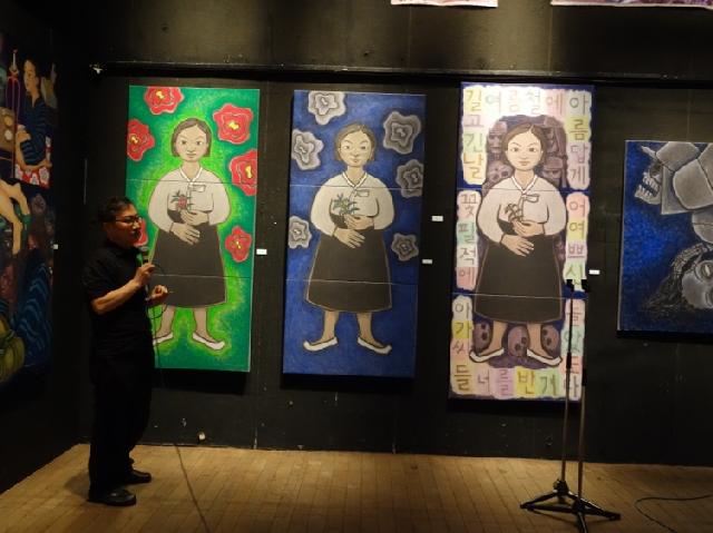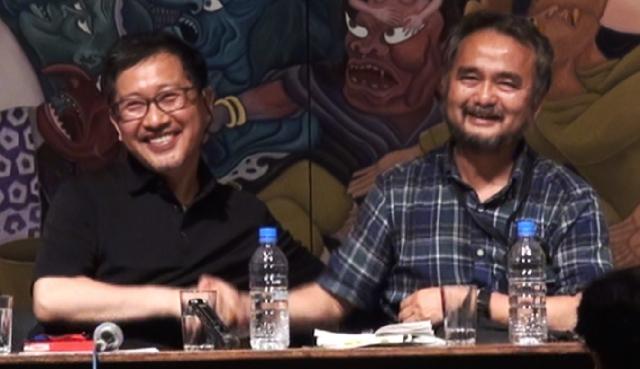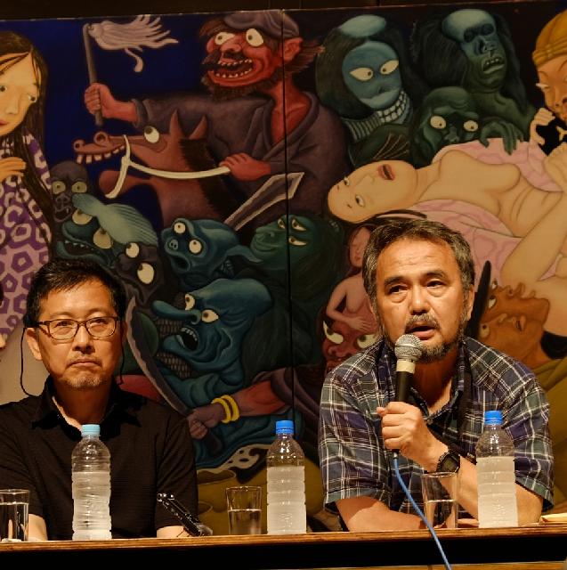 伝えるということ−”記憶”をめぐる表現者の対話〜東アジアのヤスクニズム8日目ジャーナリストで、30年近く”パレスチナ・イスラエル”を取材し、伝え続けている土井 敏邦監督の最新作『”記憶”と生きる』(渋谷アップリンクで公開中)の第二部を特別に 上映させていただいた。 「ナヌムの家」で最年年少の姜徳景(カン・ドッキョン)さんは、「⼥⼦挺⾝隊」として 日本に渡るが、脱走したことで「慰安婦」にされる。望まない⼦を宿し、戦後帰国した彼 ⼥の波乱の半生。その体験と⼼情を姜徳景は絵で表現した。やがて肺がん末期と宣告され る。彼⼥が死を迎えるまでの2 年間を記録。 上映後、土井監督と洪成潭さんのトークセッション。 今日は表現者の二人なので、土井さんの映画のあとは、連作〈靖国の迷妄〉のなかで日本 軍「慰安婦」被害女性をモチーフにした作品群を洪成潭さんご自身に解説していただいた 。 ひとりの女性が「慰安婦」にさせられていく絵をたどりながら、最後の絵では、日本軍国 主義が「慰安婦」被害女性の身体をズタズタに切り裂いたが、一方で自身の身体も切り裂 かいた。被害女性はもちろん、加害者の兵士も、肉体的・精神的に崩壊していくさまが描 かれている。靖国とは、こうしたマゾヒスティックな状況を、目に見えないように何かで 包み隠した追悼施設だと思う。 ■伝えるということ 土井さんは、映画に出て来る姜徳景さんの絵から、「被害者からははっきりと日本の戦争 の責任者は見えている」と思ったように、洪さんのヤスクニの絵からもそれを感じたとい う。わたしたちがあいまいにしてきた問題をつきつけられる。 光州民衆抗争で文化宣伝隊として活動した洪成潭さんがその真実を伝えるため命がけで制 作した「五月連作版画- 夜明け」にふれ、伝えるということは何なのか、あらためて自身 に問われたと語った。 洪さんは、この映画をとおして姜徳景ハルモニの生涯を初めて知ったと言い、映画の最後 で死を目前にした姜徳景ハルモニが酸素マスクをつけて体が壊れていくシーンでは、監督 のカメラの視線は私たちに要求する、「あなたもいつかこうして死んでいくだろう」と。 ここで姜徳景ハルモニと観る者を同一視するという厳しい方法を監督は選択したと思う。 これこそ感動だ。 ■”記憶”をめぐって 土井さんから、この映画には、記憶と尊厳という2つの主題がある。日本では「慰安婦」 被害女性の証言の細かな思い違いやあいまいさを批判し、事実を否定する声が高まってい る。しかしだから”記憶”が間違っているのではない。辛い記憶を背負って生きることの 困難さを記録したかった。 洪さんが展覧会リーフレットに書いている「記憶−ヤスクニ」という文章がある。 「記憶」にもいくつかの種類がある。書いたことは忘れ、甘いことだけ覚えている「便利 な記憶」、コミュニケーションが不在した知識人の偏見によって作られた「操作された記 憶」、国家主義システムが作った「習慣化された記憶」などである。 私たち人間は、美しい未来のために、苦しげに、時には悔恨と反省から「記憶闘争」をす る。 光州では、国家によってでっきあげられた記憶ではなく、まっとうな記憶を取り戻した。 それがなければ民主化はできなかったと語った。 土井さんは『光州「五月連作版画- 夜明け」ひとがひとを呼ぶ』で版画や詩、討論を読ん で、光州市民がつよい絆で団結していくことが伝わってきた。「抵抗をとおして共同性を つくる」という言葉があり、パレスチナの民衆蜂起が思い浮かんだ。銃を相手に石でたた かいたくさんの人が亡くなった。そのなかで助け合い、共同性をもっていくことを教えて もらった。魂を太らせてもらっていると考えている。 洪さんは光州から何を得たかと問いに、洪さんは、数多くの死を目撃した。それは歴史的 にみると決して無駄ではなかったと思う。真の民主主義は私たちの血を流さずにはなしえ ないとも思った。われわれ市民の力で光州を解放したときの、美しい記憶は忘れることが できない。人間がこれほど美しく偉大だということを知った。 表現者として生きる二人の意気投合した対話だった。 洪成潭『光州「五月連作版画- 夜明け」ひとがひとを呼ぶ』(夜光社、2012 年)と、土 井敏邦『”記憶”に生きる−−元「慰安婦」姜徳景の生涯』(大月書店、2015年) いよいよ本日最終日です。 8/2 (日) 14〜17 時 ●東アジアのヤスクニズム ダグラス・ラミス(政治学、沖縄国際大学教員) +まとめディスカッション コメント:須藤遙子(文化政治学、自衛隊協力映画研究)、 小倉利丸(現代資本主義論)ほか ※当初予定されていた田中優子さんは、急な公務のため参加できなくなりました。楽しみ にされていた方、申し訳ありません。代わりに特別寄稿をいただき、ご来場のみなさまに は配布しております。 (文責:岡本有佳) Created by staff01. Last modified on 2015-08-02 11:40:55 Copyright: Default | |