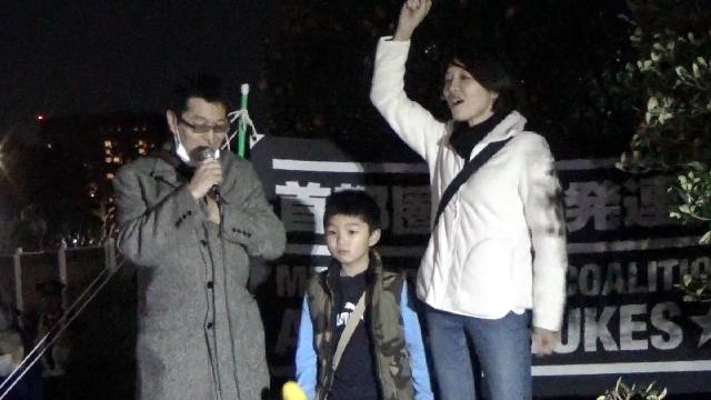 「原発マフィアのセールスマン!恥ずかしい」〜3.18金曜行動レポート木下昌明3月18日金曜日、首相官邸前の反原発抗議行動。この夜、久しぶりに斎藤美智子さん(写真)が官邸に向かってスピーチしている姿をみた。彼女をみかけたのは昨年9月以来で、そのときは「史上最悪の首相 わたしたちの恥だ!」と抗議していた。この日は「あなたは原発マフィアのセールスマンか! 恥ずかしい」と。以前に、失礼だがお年を伺ったとき「87歳」とおっしゃっていた。電車をのりついでこられるという。彼女のがんばりに驚きと敬意を抱いている。 国会前では、長野からきた若い女性(写真上)が、長野駅前で映画『首相官邸の前で』の自主上映の話をしていた。彼女は最初、この映画をみたとき「こんな世界が起こっていたんだ」と感動したという。そこで観た人にきくと「全然知らなかった」といわれた、と。 このスピーチに驚きつつもそうなのだろうな、とも思った。連日のように全国でデモが行われているが、それが新聞やテレビで報道されることはなくなっている。地方紙の『東京新聞』が取り上げているくらいか。 この日も国会前でよくみかけるようになった子ども連れの夫婦がスピーチしていた。高浜原発差し止めの裁判官の勇気をたたえ、また、お礼の手紙をかいているという。電気は東京電力から換えてホッとした、と訴え、「子どもを守れ」とコールしていた(写真上)ーー子どもたちの未来を閉ざしてはならない。 Created by staff01. Last modified on 2016-03-19 12:04:05 Copyright: Default | |