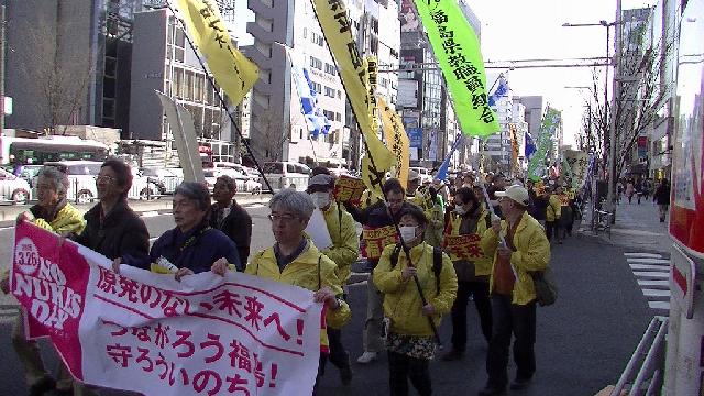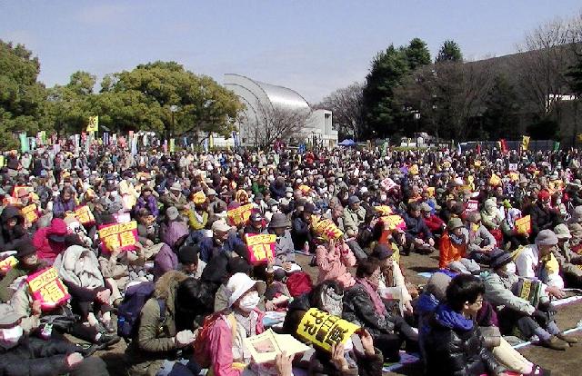 NO NUKES DAY 原発のない未来へ!35000人が結集湯本雅典3月26日東京・代々木公園で開催された「NO NUKES DAY 原発のない未来へ!全国大集会」に35000人が集まった(主催:さようなら原発1000万人アクション他3団体)。 代々木公園では3つのステージが用意され、デモ隊は3方向に分かれて出発した。この日、福島、郡山からはバス2台で上京団が参加した。 震災から5年、政府は脱原発の方向から完全に背を向けてきた。また、原発震災の被害者の「生きる権利」をふみにじってきた。 福島からの代表団からは、「原発被害者の救済を求める第3期署名が始まりました」(蛇石郁子郡山市議会議員/写真)という報告があった。 また運転差し止めの仮処分が出された当該の原発立地県である福井県からは、「再稼働したばかりの原発の運転を止めることができました」(宮下正一さん)という報告があった。 特に感じたのは、デモ隊に対する沿道の注目の多さである。5年間、がまんにがまんを重ねてきた人たちの怒りがここに集まった。 Created by staff01. Last modified on 2016-03-26 23:09:22 Copyright: Default | |