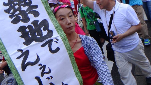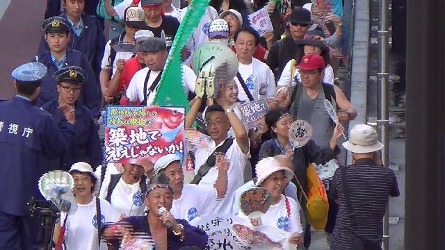 築地でええじゃないか!新宿港町行進〜11月豊洲移転の中止もとめて8月20日、「築地でええじゃないか!ええじゃないか!」の囃子言葉を連呼し、踊りながらのデモが新宿の街を練り歩いた。約70人ほどだが迫力は満点で、通行人の注目を浴びた。 築地市場の豊洲移転が11月7日に迫るなか、土壌汚染をはじめ様々な問題が噴出し、小池新知事も「いったん立ち止まって考える」と再検討に入っている。 集会では、吉良よし子議員(写真上)が「ゼロ歳児を育てているが、ベンゼンが出るところの魚を子どもに食べさせるわけにはいかない。仲卸業者の多くも反対している。小池知事には公約を守ってほしい」と発言。また築地市場労組委員長の中澤誠さんも「汚染問題だけでなく全部がおかしい。最初から無茶な計画でそのインチキがバレた」と、豊洲移転中止を強く求めていた。「世界に誇る日本の文化」である築地を守りたい。参加者の意気は高かった。(M) Created by staff01. Last modified on 2016-08-21 00:16:39 Copyright: Default | ||||||