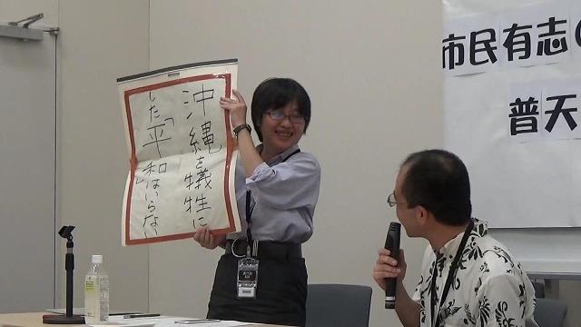 沖縄基地問題を選挙の争点に!〜「高江ヘリ事故」翌日、市民有志が記者会見動画(31分) 10月12日午後、東京・参議院会館で「市民有志の緊急アピール普天間・辺野古基地問題を選挙の争点に!記者会見」が開かれた。前日には、沖縄県東村高江の集落に米軍ヘリが墜落したばかりで緊迫した雰囲気だった。 国会前ではヘリ事故を報じる「沖縄タイムス」(写真上)を掲げて座り込みをしている人たちがいた。その中の女性がインタビューに応じてくれた。「税金問題だとかと言っている時に、軍事費にどれだけお金を使っているのか、高江に基地をつくるために機動隊にどれだけ無駄にお金を使っているのか。このことが語られない。消費税をあげなくても十分やっていける」と憤っていた。 午後3時から開始された記者会見で、「沖縄への偏見をあおる放送をゆるさない市民有志」の川名真理さん(写真上)は「昨日、立憲民主党に、辺野古新基地建設見直しの取り組みを求める要請書を提出しました」と発表した。 流通経済大学法学部教授の宮平真弥さん(写真上)は「立憲民主党に期待してます」と前置きし、「これまでほとんどの国政選挙で、沖縄の基地問題が争点になってこなかったことは事実。票にならない、関心がうすいということで争点にしない。この悪循環できたのではないか」と問いかけた。また「沖縄返還から45年、米軍航空機関連の事故は1972年から現在にいたるまで500件を超えている。米軍属の犯罪件数は約6000件、強盗・殺人・放火・強姦といった凶悪犯罪が570件、強姦事件だけで130件以上ある。これこそが争点ではないか」と呼びかけた。 沖縄環境ネットワークの花輪伸一さん(写真上)は、日米地位協定について「裁判に訴えても最高裁判所までが逃げてしまう。こういう日本の司法界の現状があり、大きな責任がある。司法・立法・行政、こういうところできちんと米軍基地の問題をやっていかなければいけない。それを選挙の争点にだしてもらいたい」と訴えた。 ピースボートの野平晋作さん(写真上)は、「今回の衆議院議員選挙において、沖縄のことが全く争点となっていない。やはりこれは在日米軍基地の7割が沖縄に集中されていて、基地被害も沖縄に集中しているからだと思う。基地問題は沖縄ローカルではなく日本全国の問題だと思うが、国政選挙の争点にならないことそのことが、沖縄への暴力なんではないかと感じている」「メディアは、沖縄について各政党がどういうスタンスをとっているかを調べ、国民に伝えて、そのうえで投票しましょうと呼びかけてほしい」と語った。 質疑応答では「10月11日高江に墜落した大型ヘリCH53Eについてどう思うか?」の問いに、宮平真弥さんはMX抗議行動のときに見たプラカードで1番印象に残ったのは『沖縄を犠牲にした平和はいらない』(写真上)というものだった。 沖縄を犠牲にした平和はいらないのか、沖縄を犠牲にしてまで生き延びたいのか、そのことがいま問われていると思う」と答えた。なお、同じ日夜、東京・市ヶ谷防衛省前では「ヘリ墜落の緊急行動」、そしてMXテレビ前では「ニュース女子」偏見放送への抗議行動が行われた。(見雪恵美) Created by emi. Last modified on 2017-10-14 20:42:27 Copyright: Default | ||||||