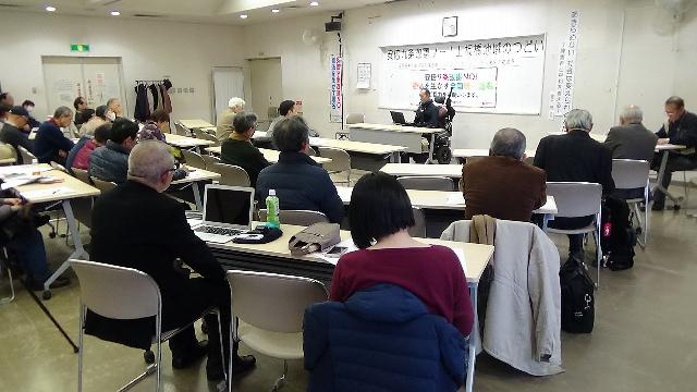 障害者運動を通じて地域から3000万署名を考える動画(5分10秒)2月24日、東京都板橋区常盤台地域センターで「安倍九条改憲ノー!上板橋地域のつどい」が開催された(主催:戦争法廃止!上板橋地域実行委員会)。第一部は、「あきらめない。社会は変えられるんだ」と題して家平悟さん(障害者の生活と権利を守る全国連絡協議会事務局次長)の講演、第二部は、3000万人署名運動の交流が行われた。 家平悟さん↓ 署名運動の交流↓ 主催者の一人越前敏勝さんは、「9条改憲が9条だけでない、国民の暮らしにも大きな影響を与えるということを確認できた」と語った。(湯本雅典) Created by yumo. Last modified on 2018-02-25 00:58:57 Copyright: Default | |