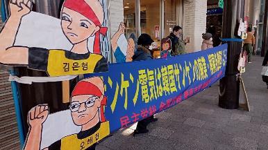 「サンケン電気は日本国内の事業所の統廃業をする際には社員や労組と1年以上前から事前に協議をして進めるのに、韓国では工場の解散にも労働者と労組に全く話し合いがない。サンケン電気社員のみなさん!周辺住民のみなさん!サンケン電気の素顔をご存知でしょうか?先週の木曜日の夜、韓国の公共放送テレビKBSで50分の特集番組が全国放送され、今ではネットで全世界に拡散している。番組の反響の大きさに私たち自身も驚いている。『サンケン電気は酷すぎる』『どんなことをしたのか?』、YouTubeには激励の書き込みが続々と届いている。日本のみなさんの熾烈な連帯闘争も伝わった。番組の中で連帯闘争に参加している日本のみなさんが登場し、なぜ闘うのかを語っていた。韓国ではサンケン電気と事業提携しているLG電子への批判も強くなった。LGに対する取り組み強化を求める声も高まっている。番組を見て、ソウルのサンケン・コリア前の籠城テントを訪れ、差し入れをして激励する人も増えている。闘いはもうすぐ600日になる。韓国サンケンの労働者と家族が厳しい生活を強いられている。馬山からソウルに上京する組合員は、2週間子どもと離れざるを得ない。自分の子どもの宿題を見てあげることもできない。解雇されて連れ合いに負担を強いる組合員もいる。子どものいる組合員は、鳴き声に耳を塞いで、毎朝、心を鬼にして闘いに出る、そんな生活が600日も続いている。闘いが長引き、怒りが収まる人もいるし、鬱を発症する組合員もいる。毎日の闘い、寒さの中で立ち続けることで腰や膝を痛める組合員もいる。体調を崩し、不眠症になる組合員もいる。そんな厳しい中でも、お互いを支え合い、闘いを進めている。サンケン電気経営陣は、金持ちの連中は、札束で頬をひっぱたけば貧乏人をどうにでもできると思うのか!そんな理不尽に、負けてはいられない。貧乏人を札束でどうにでもできると考えているなら、とんでもない勘違いだ!韓国サンケンの工場は雨漏りするような職場だったが、私たちにとっては生活の場、青春が込められた職場だ。私たちが作り上げた職場であり、その工場を離れて私たちの人生を語ることはできない。そんな工場を一方的に清算するのが許されるのか!私たちは工場と生活を守るために、闘いを進める。『もう韓国サンケンの工場は無いではないか?』、そう言う人もいる。しかしサンケン電気は韓国内での事業を拡大している。生産工場を買収し、サンケン・コリアという営業拠点もある。私たち12人の雇用を確保することはできるはずだ。サンケン電気は話し合いに応じなければならない。私たちは最後まで闘いを続ける。勝利まで闘いを止めない。日本のみなさんと握った手を放すことなく、闘い続けましょう!闘争!」