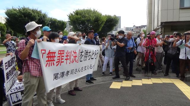裁判長は起訴内容の「暴行・威力業務妨害」を丸ごと認めるいっぽう、「懲役刑に相当する事案ではない」との理由で罰金40万円とした。しかも未決勾留分を1日5000円として罰金は相殺するので支払う必要がないというもの。尾澤孝司さんは「温情で罰金にしてやったというふざけたもの。判決内容はすべて検察の主張を丸呑みしている。また日韓連帯運動を否定する内容で絶対に許せない。控訴してたたかう」と地裁前で語った。尾澤さんは杖をついている。7か月半に及ぶ長期勾留で足腰をすっかりやられていたのだ。 妻の尾澤邦子さんは「サンケン電気が暴行をデッチあげたのに、サンケンは裁判にまったく出てこない。サンケン隠しは許せない。それにきょうの裁判所内には警察官がたくさん入っていた。理由を聞くと“応援”にきたという。とんでもない。三権分立など存在していない」と怒りを露わにした。 報告集会で、荒木弁護士は「本来無罪にされるべき事件。裁判所は腰が引けて中途半端な罰金刑にした」と解説した。つまり裁判所は大いに「サンケン・警察・検察」に忖度して「罰金刑」にしたのだ。 この事件は、2021年5月10日のサンケン電気前で抗議要請中に起きたもので、警備員と尾澤孝司さんとの間で押し問答と押し合いがあったというだけの話。監視カメラも残っていて、事実関係は明らかだった。双方が押し合ったのに、警備員はまったく不問にされ、尾澤さんだけが「暴行」として起訴された不思議な事件。またサンケン電気が警察に通報したのに、サンケン電気は表に出ず、警備会社の事件にすり替えた。労働運動つぶしのために会社が動き、警察が介入したとんでもない権力犯罪といえる事件。だからこそ、司法は必死に会社・警察側をかばい「罰金」で収めようとしたのではないか。 法廷内で、地裁前で支援者の怒りの声が上がった。報告集会では、「尾澤孝司さんは220日以上勾留されている。罰金40万円は80日分だ。残りはどうしてくれるのか」との素朴な疑問も出された。ますます明らかになった「暴行デッチ上げ」。たたかいは高裁の場に移る。(M) Created by staff01. Last modified on 2023-09-11 22:59:54 Copyright: Default | ||||||