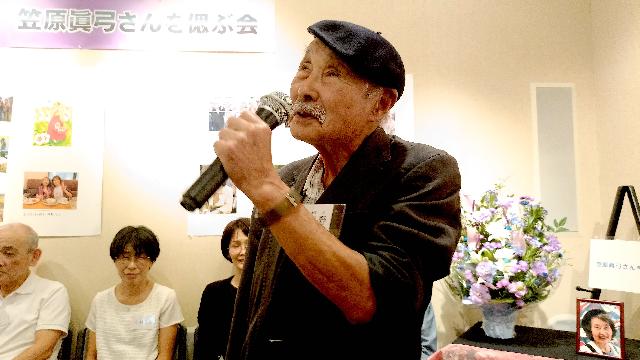 きちんと生ききった人生〜まるでドラマの三時間「笠原眞弓さんを偲ぶ会」堀切さとみ 10月4日、「笠原眞弓さんを偲ぶ会」が行われた。ギャラリー古藤は30人を超える人でいっぱい。安保法制に反対するママの会、有機農業映画祭、レイバーネット、市民運動や消費者運動と人たち。 「献杯を頼まれたけど、どうやったらいいのかチャットGPTに教えを請うた」という農業ジャーナリストの大野和興さん(写真上)に始まり、集まった人たちの話はどれもこれも面白い。 笠原さんは笠原さんの魅力は、言いたいことをズバッというのに憎まれないこと。自分がいいと思ったことをやる。簡単なようで難しい。抗がん剤で具合が悪くなった笠原さんは、活動できなくなるからといって抗がん剤治療をスッパリやめ、自分のやりたいことをやった。そのことを親族は理解しなかったようだ。その代わり、世代を超えた沢山の仲間や友達がいた。 笠原さんと同世代の親友の二人が、緩和ケアでの最期の笠原さんのことを話した。「もう終わり、もうダメ」と手を握ってハッキリ言ったそうだ。自分の命が尽きるのを、きちんと伝えて死ぬ。何ということだろう。