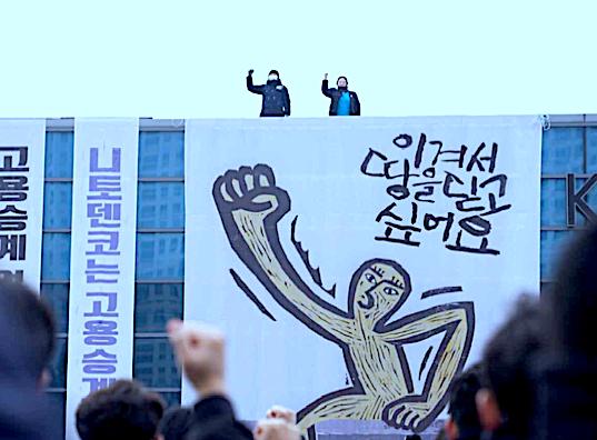●12月28日(日)11:00 〜 18:00(開場10:30) ●板橋区グリーンホール ●参加費 一般当日 1800円 前売・予約 1500円 予約・問合せ →ライブ配信あります(簡易方式)https://youtube.com/live/t7I2Y2IGwQM ――――――――――――――――――― 10:30 開場 ■プログラムは変更の可能性あります。 ―――<演目紹介>―――――――――――― ★『高空籠城600日』(49分/2025年/制作:高空籠城600日監督連帯) 2022年10月4日、韓国の慶尚北道クミ市にある、日東電工の100%子会社韓国オプティカルハイテックで火災が発生した。労働者たちは、火災保険金1300億ウォンで工場が再建されると思っていた。しかし会社は保険金を日本本社に送り、工場清算を決めた。日東電工は韓国の労働者によって多くの収益を上げながら、労働者を裏切ったのだ。工場を去ることができなかった労働者たちは、工場撤去を防ぐため屋上に上がった。世界最長期の高空籠城はこのようにして始まった。(日本初公開作品) ★音楽コーナー『この世界が終わるなんて嘘だろう』 物騒な世の中に向けて、私たちは何度でも何度でも何度でも歌う♪ 警鐘を鳴らし行動する! 【出演】生田まんじ&SOSO ★特別企画:映像とディスカッション「その再開発は誰のためのもの?――声を上げる市 民が手を結ぶ」〜大山商店街・赤羽せんべろ・あなたの街 再開発の名のもと、タワマン建設計画が相次ぐ板橋区。そこでは住民が置いてきぼりにされ、行政やデベロッパーが先走って事業を進めてしまう構図が共通している。住民が暮らしを奪われ、それまでの快適な地域や文化が破壊される「再開発」の本質は何か? 暮らしを守る運動を始めた大山や赤羽の皆さんを迎え、映像も参考にしながら考える場を設けます。 ★講談『雲外へ翔る鶴彬』(菅原織司/社会人講談師)