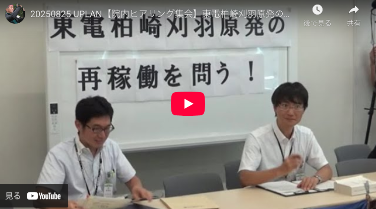 20250825 UPLAN【院内ヒアリング集会】東電柏崎刈羽原発の再稼働を問う