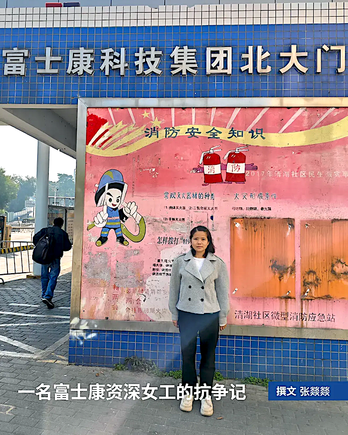 り上げ、30人余りのフォックスコンの元同僚らといっしょに過少部分の支払いをかちとっ