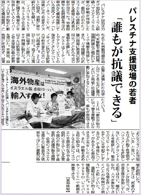 レイバーネットTV「パレスチナと若者」、毎日新聞が報道 | ||||||