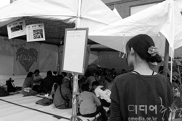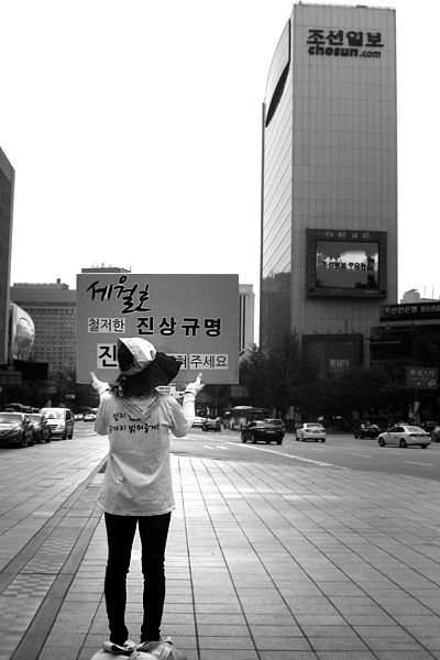 彼女は8月31日に職場を辞めてセウォル号遺族がいる光化門・清雲洞の座込場にきた。