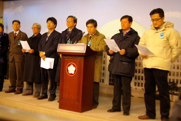 12月26日、午前10時30分、国会政論館では言論私有化阻止およびメディア公共 性拡大のための社会行動(メディア行動)と、国民主権と言論の自由守護のため のジャーナリスト時局宣言(ジャーナリスト時局宣言)代表者、全国牧師正義平 和実践協議会などが記者会見を行った。