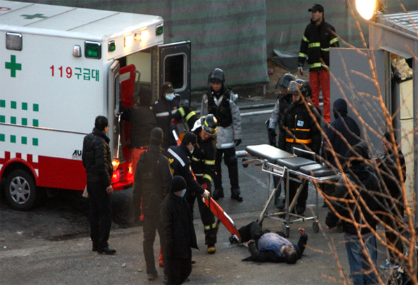 ソウル中央地検捜査本部は5日、櫓から脱出した後で焼死した籠城者がいるとい う指摘に対して「信憑性がない」と述べ、真相調査団が証拠資料を提示して繰 り返し徹底捜査を要求した。 検察、「ベランダを超えて落ちた人はキム・ヨングン」 検察は櫓からベランダに落ち、また駐車場に落ちたチ・ソクチュン氏に対して 「チ氏は写真の中でしがみついた人が本人だと主張したが、昨日調べてみると 他の籠城者の金某氏であった」と述べ「チ氏も本人だと言わず、逮捕の経緯も 全く話さず、陳述に信憑性がない」と説明した。 検察の主張は、駐車場に籠城者がチ・ソクチュン氏ではなくキム・ヨングン氏 で、チ・ソクチュン氏の陳述には信憑性がないということだ。