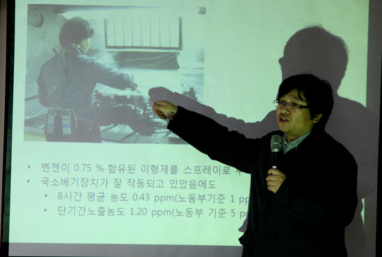 ▲ キム・シンボム労働環境健康研究所産業衛生室長は『自動車生産過程で使われる化学物質の問題と対策』発表で「われわれは使わなくてもいい発ガン物質を乱用し何が発ガン物質なのかも知らずに中毒しており、ベンゼンのような高毒性物質が成分も表記されていない」と強調した。 この日の討論会に基調発表者になったキム・シンボム労働環境健康研究所産業 衛生室長は、『自動車の生産過程で使われる化学物質の問題と対策』という発 表で「われわれは使わなくてもいい発ガン物質を乱用して、何が発ガン物質な のかも知らずに中毒しており、ベンゼンのような高毒性物質の成分も表記され ていない」と強調した。キム・シンボム室長は「発ガン物質の実態を明らかに し、減らすための社会的運動、規制など総合対策が必要だ」とし「政府が発ガ ン物質の目録を制定して発ガン物質の使用時には『優先代替の義務』を産業安 全保健法に入れ、何が発ガン物質かを知る権利と回避権を与えろ」と話した。 キム・シンボム室長は特に、多くの製品で発ガン物質の毒性情報が確認できな い実態も指摘した。金室長は「企業秘密が乱発されており、物質の毒性情報を 確認することもできず、MSDS(物質安全保健資料)にベンゼン含有量の表記を強 制する制度がないため、ベンゼンが多く含まれていてもわからずに使っている 所もあるので、ベンゼン含有量表示を義務化すべき」とし「発ガン物質は企業 秘密から非公開にできないように制度化しなければならない」と明らかにした。 この日の討論会には現代車起亜車労組の労働安全室も参加して、各事業場の発 ガン物質調査の結果と今後の課題を説明した。 現代車労組(支部)は現代車が使うすべての製品のMSDSを会社から受け取って、 国際的な有害物質データベースと対照した。現代自動車のコ・インソプ労働安 全室長は「1501の製品を分析した結果、このうち発ガン性1、2級物質が含まれ る製品は175(11.7%)種類で、すべて金属労組事業場の平均より高かった」と明 らかにした。コ・インソプ室長は「製品のMSDSで確認された発ガン性1級物質は 鋳物廃砂のシリカ(石英)、廃水処理用硫酸、ガソリンのベンゼン、メッキおよ び触媒のニッケル化合物、塗料のホルムアルデヒドと六価クロムが発見され、 アスベストも発見された」と明らかにした。 コ室長は「塗装2部では肺ガンと鼻腔ガン発生有害要素が確認され、素材1部で はアスベストとシリカの露出による肺ガン発生の恐れがあり、エンジン3部では 切削油のオイルミストによる食道癌と喉頭癌の発生の可能性があることが明ら かになった」とし「3部処で発ガン物質診断事業を実施したが、他の部処でもい くらでも別の原因物質で異なるのガンが発生するかもれしない」と指摘した。 コ・インソプ室長は「今後、全事業場に発ガン物質の診断事業を拡大する必要 がある」とし、△全工場に発ガン物質調査事業拡大、△素材工場のアスベスト 診断事業実施、△全工場の塗料および希薄剤のベンゼン含有の有無実態調査の 実施、△全工場と部品会社に労使が合意した禁止物質を使用しないように適用、 △深刻な発ガン物質の使用禁止と物質代替のための労使発ガン物質TFTの構成を 要求すると明らかにした。 ![]() 起亜車労組も全事業場に発ガン物質調査の拡大実施をする意思を明らかにした。 起亜車労組のキム・ジョンシン労働安全室長も「発ガン物質診断事業により、 発生する可能性がある職業性ガンを部処別にまとめ、部処別に使用禁止および 制限すべき発ガン物質を見つけて対策をたてる事業を事業場全体に拡大しなけ ればならない」とし「組合員が高齢化し、今後発生するガンに労災補償ができ るように過去の露出の可能性を確認し、資料に作ることをぜひしなければなら ない」と強調した。 また「労組が採取分析を依頼した一部の塗料から0.1%以上のベンゼンが検出さ れたが、この製品の物質安全保健資料にベンゼン含有量は提示されていない」 とし「起亜車で使用中か使用する有機溶剤系薬品のうちベンゼン含有が疑われ る鉛を燃やす原料として使った製品について、信頼できる機関からベンゼン含 有量の評価試験成績書を提出させる」と明らかにした。キム・ジョンシン室長 は「金属労組と共に作った自動車産業禁止物質と使用制限物質の目録で、これ らの物質について各部処別の含有製品を整理した後、使用者側と交渉してさら に安全な代替物質を導入するように措置したい」と明らかにした。 翻訳/文責:安田(ゆ)