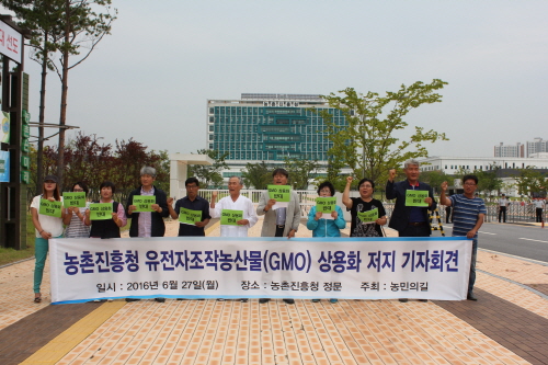 「農民と農業を守るべき農村振興庁が、 農民の不安を解消させてられず残念だ。」 6月27日、全国農民会総連盟、カトリック農民会などの農民団体が、 全羅北道の全州革新都市にある農村振興庁でイ・ヤンホ庁長と面談した。 農村振興庁が推進しているGM作物の開発に対する農民の憂慮を伝えるためであった。 カトリック農民会、全国農民会総連盟、全国女性農民会総連合、全国親環境農業人連合会の4つの農民団体で構成された「農民の道」は、 6月27日午前、農村振興庁を訪問した。 彼らは庁長との面談に先立ち記者会見を行って、面談の目的を説明した。 彼らは「何回か、農村振興庁のGM作物開発と商用化への憂慮と警告をしたが、 農村振興庁は一言半句の立場も出さない」とし 「われわれはGMO開発と商用化推進に対する国民の憂慮と心配、怒りを伝え、 持続可能な農業のための立場を伝える計画」と面談の理由を説明した。 農村振興庁は、 ▲主穀である米だけは世界最高の技術力の確保が必要、 ▲未来に備えた技術力と育種材料の確保の必要性などを理由として GMイネ開発の必要性を説明した。(農業振興庁と全北地域懇談会資料中より4月18日作成) しかし農民団体は世界的に自国の主食をGMOで開発する国はないとし、農村振興庁の立場に反論した。 この日の面談は、農村振興庁の厳格な統制によって行われた。 事前の記者会見が行われている間、農村振興庁の正門を封鎖し、 出入の自由を認めなかった。 そして記者の面談取材も拒否した。 農村振興庁の関係者は 「事前に約束していたのではないので記者は入れない」と明らかにし、 記者の出入は農村振興庁1階に制限した。 農民団体の関係者は「それなら写真撮影でもしよう」と提案したが、これさえ認められなかった。 なお、この日の面談は1時間近く進められた。 庁長との面談を行ってきた農民団体の関係者は 「GMOそのものへの問題の指摘よりも、農民が感じている不安と憂慮を払拭させる次元でGMイネの試験栽培地の公開を要請することに焦点を合わせた」とし 「しかし、現実的な困難を理由に制限的に検討するという話もあったが、 事実上の拒否に近い答弁を聞いた」と話した。 別の関係者は「数か月前から要請して、やっと実現した面談だった」とし 「不信と疑惑だけが大きくなった感じだ」と考えを伝えた。 付記