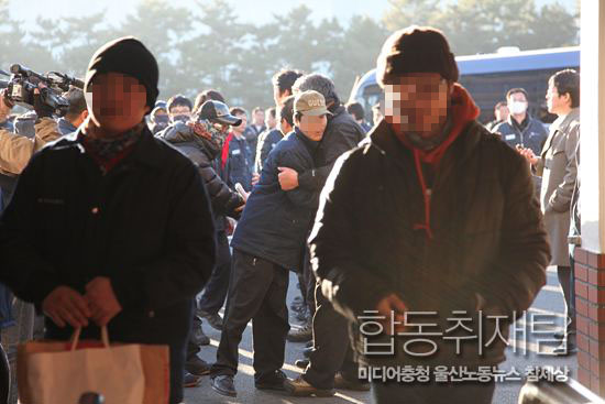 ▲座り込みを解除して工場の外に出る非正規職組合員[出処:資料写真] 変革産別は「会社は特別交渉四大要求のうち、△雇用保障、△告訴告発撤回、 △指導部身辺保障という交渉の先決条件である三大要求を労使間に争点事項の ようにすることに成功し、中心的に扱われるべき『不法派遣特別交渉に対する 対策』は議論のテーブルにさえ上げられないようにした」とし「1月から本格的 な交渉が始まるといっても、不法派遣交渉の対策は、せいぜい『誠実に交渉に 参加する』という水準だろう。金属労組と現代車非正規職支会は、2〜3月まで 不法派遣交渉を一度もできないか、一回か二回の形式的な交渉で終わる可能性 が高い」と展望した。 またこの過程で現代車支部の今後の動向も予測した。変革産別は「2011年3月の 支部代議員大会で、『不法派遣非正規職正規職化』を賃金団体協議要求案とし て設定し、会社に交渉を要求する可能性が高い。会社は、金属労組と非正規職 支会ではなく現代車支部を交渉のパートナーとして、賃金団体協議交渉で議論 するだろう」とし「現代車支部賃金団体協議で『正規職化』要求が扱われれば、 不法派遣特別交渉は始めることもできないか、組合員の関心から消えるように なり、非正規職支会組合員も独自の闘争と交渉より正規職労組の賃金団体協議 にべったり頼るしかない」と見た。 現代車社側の正規職化の対応も展望した。社側が、△2年以上勤務者、△正規職 と混在作業者、△2005年7月1日以前入社者(旧派遣法適用者)、△艤装(組み立 て)ライン勤務者など大、法院判決の内容を最小化して、現代車支部と賃金団体 協議交渉を進めるはずで、正規職が退社した席に非正規職を抜擢して採用する 段階的復職水準で整理しようとするだろうと分析した。変革産別は「これによ り、現代車支部は『段階的正規職化』という成果を上げたと主張し、非正規職 支会は何の介入も抵抗もできず見守る境遇になる展望」と見通した。 続いて「会社は2011年に約600人、2012年に約600人の定年退職が予定されてい ると明らかにしている」とし「労使合意ができれば会社は社内下請業者社長、 所長などに推薦された労働者を採用するだろう。非正規職支会組合員と幹部は 当然排除されざるをえない。これは2005〜6年の蔚山と全州で『抜てき採用』で 非正規職労組をつぶし、正規職労組の組織力もかなり傷つけるほかはない」と 強調した。 翻訳/文責:安田(ゆ)